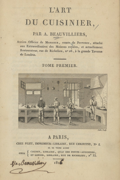 the 1815 book L’Art du Cuisinier (the Art of the Chef by A. Beauvilliers),